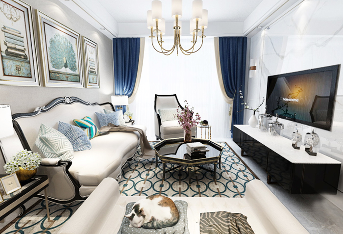 設計理念:當美式撞上現代風,簡直美的驚艷!硬朗的線條、寬大厚實的軟裝,空間中的一切都透出“舒適”、“自…